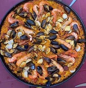 Préparée dans une paellera, la paella aux fruits de mer est un plat convivial par excellence. Elle se partage directement dans le plat, réunissant les convives autour d’un moment chaleureux, où les parfums marins et l’esprit festif se rencontrent.